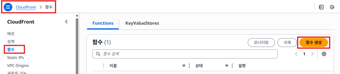 서비스를 위한 추가 고려사항(저비용 고성능을 위한 옵션 및 설정)을 정리한다.> 작성일 : 2025-05-16 이미지 사용 제한업로드한 이미지 주소를 다른 사이트 또는 앱에 무분별하게 사용할 경우 과도한 트레픽 비용이 발생함* 특정 국가로 차단* AWS WAF 활성화 - IP 주소, 리퍼러 기반 차단* S3 버킷 정책 추가* CloudFront Functions, Lambda@Edge - 사용자 지정코드로 유연하게 접근제어CloudFront Functions 기반으로 특정 요청 제한 적용 함수 생성CloudFront : 함수 : 함수 생성 클릭세부정보에서 이름 입력 & cloudfront-js-2.0 체크 하고 함수 생성 클릭특정 URL로 부터의 요청만 허용 : 아래코드 입력 후 변경 사항 저장fun..
