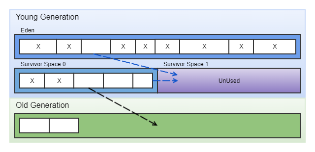 - Young Generation에서 발생하는 Garbage Collection을 Minor GC 라 한다.