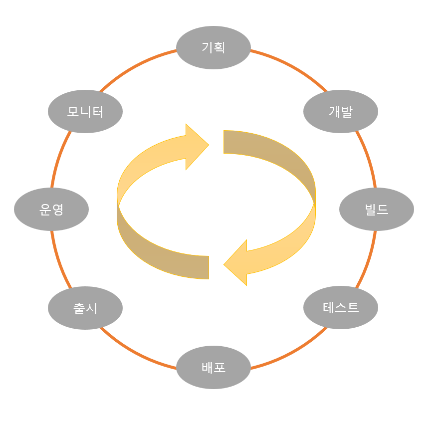 # 기획 > 개발 > 빌드 > 테스트 > 배포 > 출시 > 운영 > 모니터