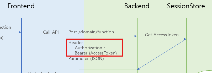 브라우저를 통해 전달된(cookie) 인증토큰을을 복호화 해서 AccessToken을 해더에 넣어 호출한다.