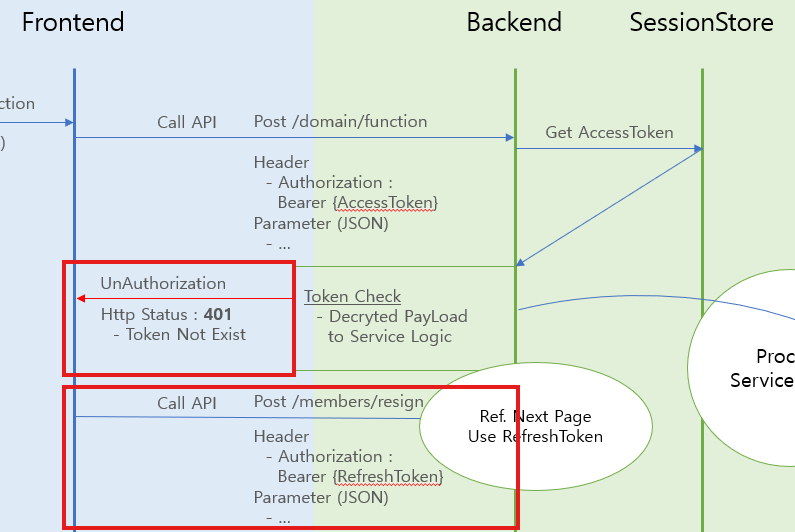 3계층 구조의 서버환경에서 AccessToken 운용법을 정리한다.