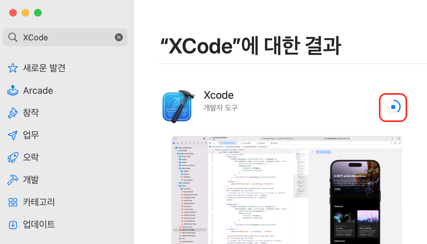 AppStore에서 Xcode를 검색하여 설치한다.