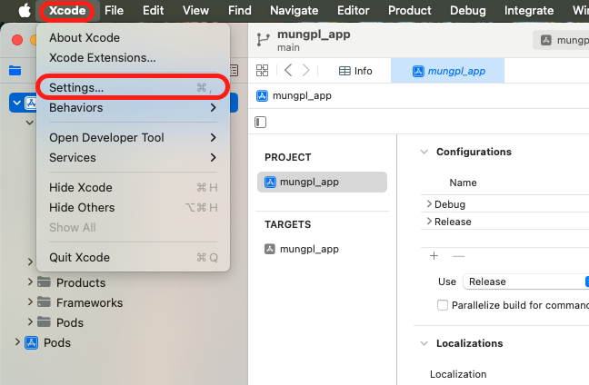 info Found Xcode workspace "mungpl_app.xcworkspace"
