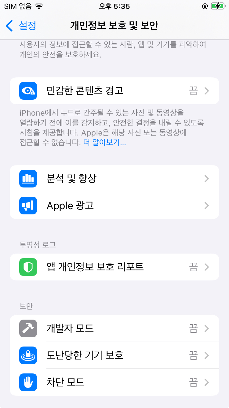 iOS 기기에서 설정 - 개인정보 보호 및 보안 - 개발자 모드 켜기 - 재부팅