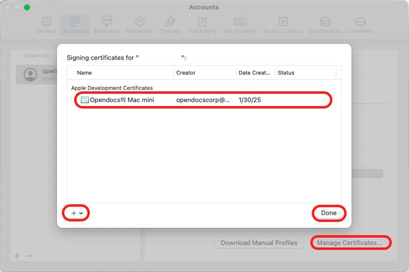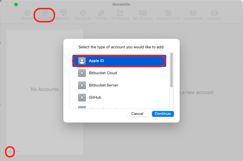 <4-1> Xcode - Settings - Accounts에서 Apple ID 추가