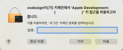 키체인 비밀번호를 입력한다. 지정한적이 없다면 그냥 엔터로 넘어간다.