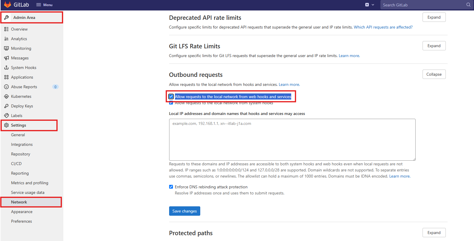 관리자 로그인 > Settings > Network > Outbound requests에서 다음 항목 체크 후 저장(Save changes 클릭)