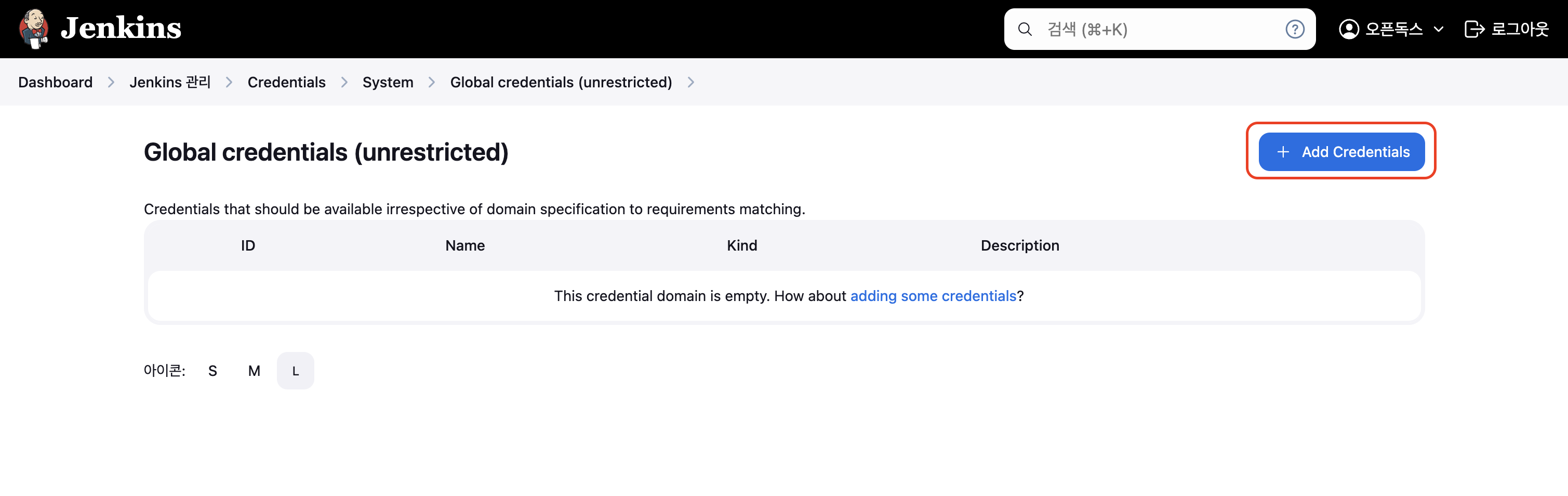 # Add Credentials 클릭