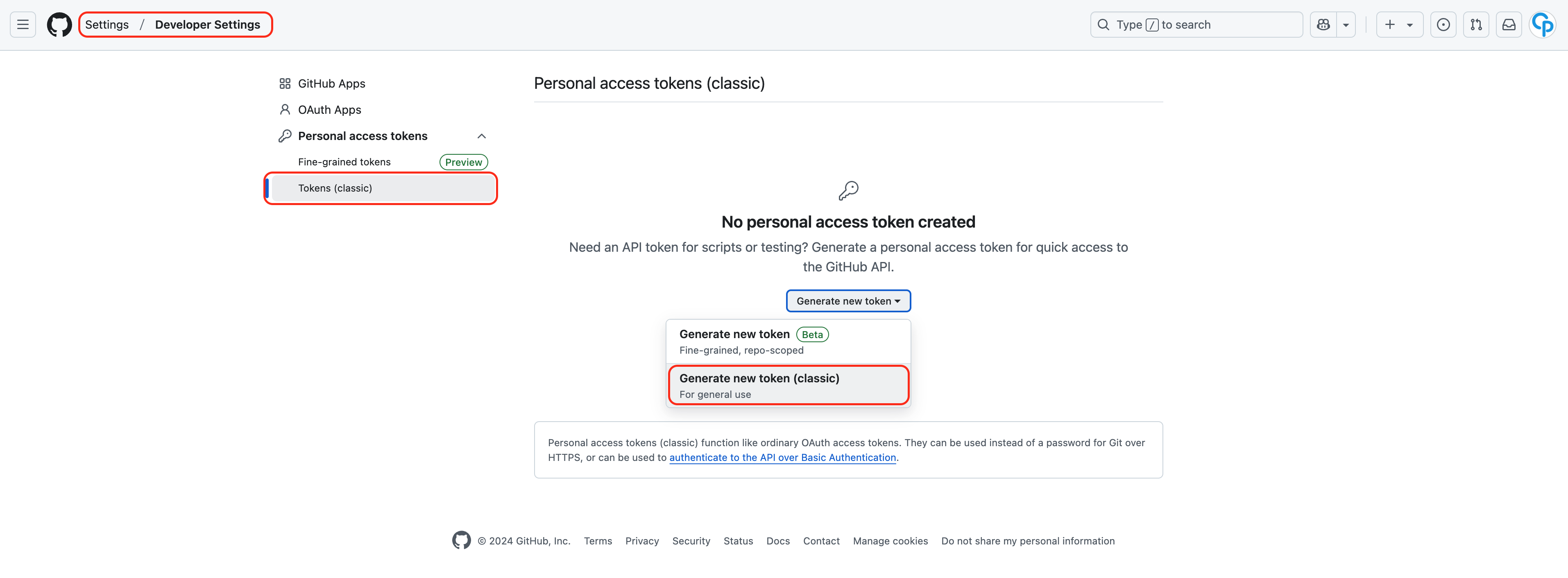 Setting > Tokens (classic) > Generate new token (classic)