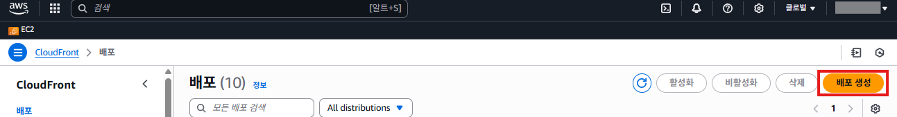 배포 목록에서 생성된 ID를 선택하고 일반 탭 : 설정 우측상단의 편집 클릭