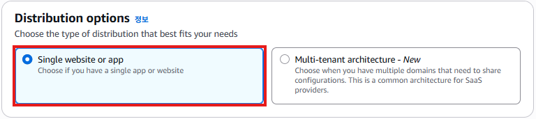 * Origin domain : Amazon S3 > 생성한 버킷 도메인 선택