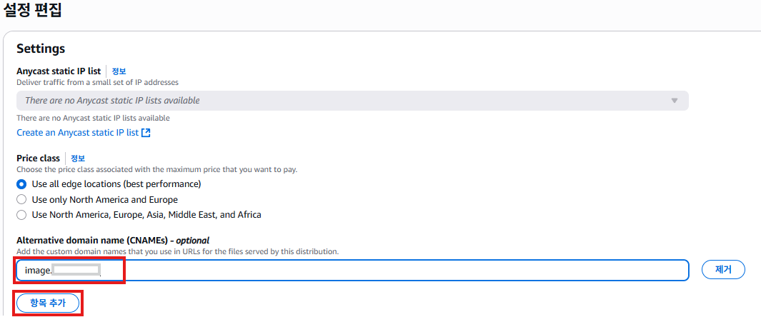 <5> CloudFront 배포 항목 Domain & 인증서 연결설정