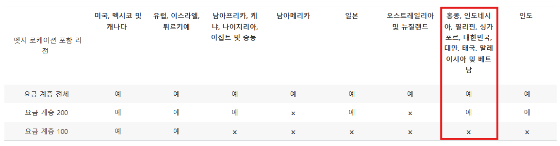 서비스를 고려하여 3가지 요금 계층 (Price Class) 중 선택할 필요가 있다.