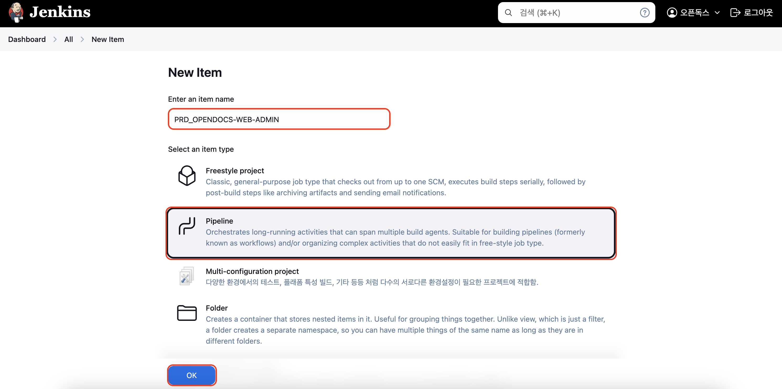 <1> Jenkins Item 생성