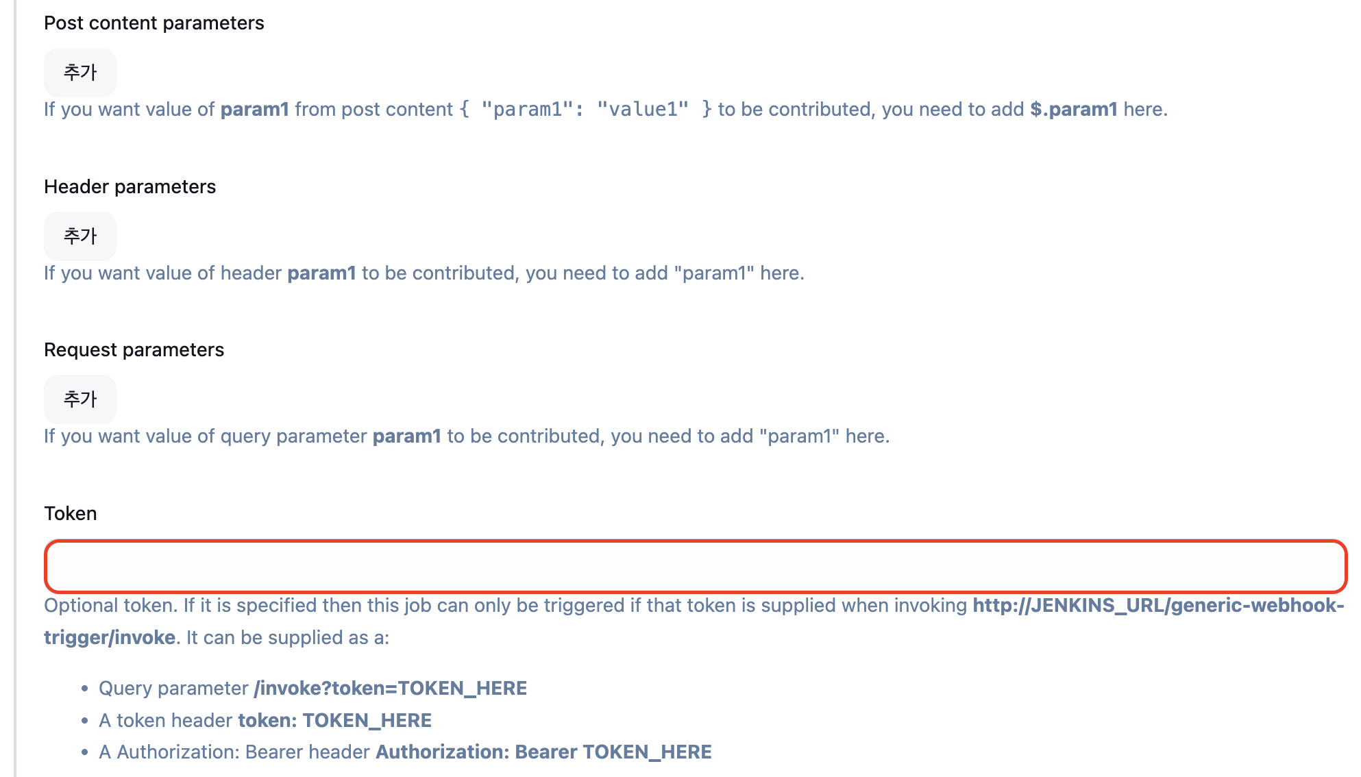 Payload URL : https://{Jenkins 주소}/generic-webhook-trigger/invoke?token={Jenkins Item Token}