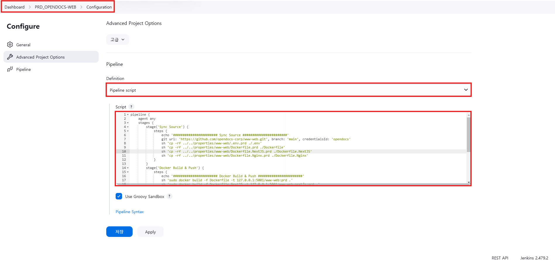 # 젠킨스 빌드시 수행될 스크립트를 작성